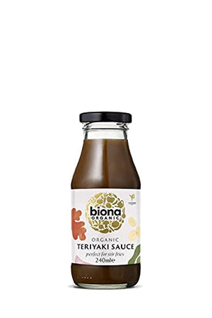 Biona Organic Teriyaki Stir Fry Sauce 250mlBiona Organic Stir fry sauces come in 3 delicious flavours; Teriyaki, Sweet & Sour and Sweet Soy. Made from organic ingredients, these cooking sauces are quick and easy to cook, transforming everyday food into delicious and exciting meals. Use in your favourite stir fry, alongside Biona noodles or as a flavoursome marinade.IngredientsWater, SOYA Sauce* (17%) (Water, SOYA Beans*, Salt), Raw Cane Sugar*, Spirit Vinegar*, Apple Cider Vinegar*, Maize Starch*, Thickener: Locust Bean Gum*, Sea Salt, Garlic* (0.2%), Onion*, Ginger Extract* (0.05%), Coriander*. * = Certified Organic IngredientsDirectionsReady to useManufacturer Contact Information6a Lower Teddington Road, Kingston, KT1 4ER B07PVVYDQG