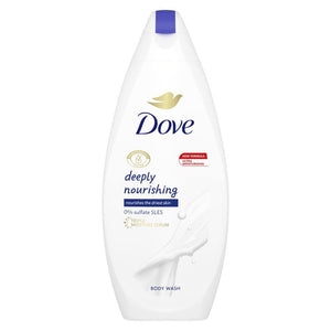 Enjoy softer, smoother skin after just one shower with Dove Deeply Nourishing Body Wash. Dove s moisturising and microbiome gentle formula provides instant softness and lasting care for your skin. Dove s nourishing formula ensures your microbiome (your skin’s living protective layer) is given the nutrients it needs to protect itself and minimise skin dryness. This moisturising body wash is made with mild cleansers to help your skin maintain its natural balance and deliver skin nourishment simultaneously. The mild, gentle formula is kind to your skin, making Dove Deeply Nourishing Body Wash better for all skin types. For better results, simply squeeze onto a shower puff or your hands and massage all over your body before rinsing thoroughly. Use this nourishing body wash as part of your daily shower routine for softer, smoother skin. All Dove skin care products are cruelty-free accredited by PETA.IngredientsAqua, Cocamidopropyl Betaine, Sodium Hydroxypropyl Starch Phosphate, Lauric Acid, Sodium Lauroyl Glycinate, Sodium Lauroyl Isethionate, Hydrogenated Soybean Oil, Sodium Chloride, Helianthus Annuus Seed Oil, Glycerin, Parfum, Guar Hydroxypropyltrimonium Chloride, Dmdm Hydantoin, Citric Acid, Sodium Hydroxide, Stearic Acid, Sodium Benzoate, Sodium Isethionate, Palmitic Acid, Tetrasodium Edta, Butylene Glycol, Capric Acid, Caprylic Acid, Iodopropynyl Butylcarbamate, Benzyl Alcohol, Citronellol, Hexyl Cinnamal, Limonene, LinaloolSafety WarningN/ANone declaredManufacturer Contact InformationUnilever House Springfield Drive Leatherhead Kt22 7Gr