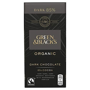 Green & Black s 85% dark chocolate - very dark, very smooth, softened with Madagascan vanilla. Suitable for vegetarians. Use 85% cocoa solids for an intense hit of cocoa. But, like everything we do, it?s balanced with just enough sugar to separate the bitterness and the acidity, resulting in an almost savoury note. The organic vanilla naturally seasons the chocolate and softens its bitterness. May contain milk and nuts.IngredientsCocoa Mass #,Cocoa Butter #,Fat-Reduced Cocoa Powder #,Raw Cane Sugar #,Vanilla Extract #,May contain Nuts, Milk,Organic Dark Chocolate: minimum Cocoa Solids 85%,Cocoa, Sugar, Vanilla: traded in compliance with Fairtrade Standards, total 100%Manufacturer Contact Information3 Sanderson Road Uxbridge UB8 1DH