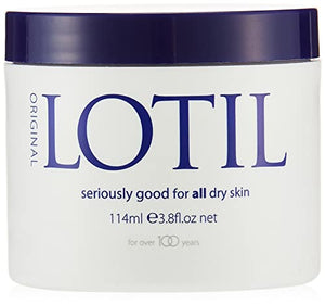 Lotil Original 114ml is an easily absorbed rich cream specifically formulated for all dry skin conditions. For best results use frequently. Gently massage into your skin until the cream is completely absorbed. Always apply after washing, before going to bed and particularly during cold, dry weather. Ingredients Aqua (water), Glyceryl Stearate SE, Glycerin,?BR? Lanolin Alcohol,?BR? Benzyl Alcohol, Cetearyl Alcohol,?BR? Oleic Acid, Triethanolamine, Stearic Acid, p-Choloro-m-Cresol, Parfum (Fragrance). Directions For best results see product for usage instructions. Box Contains 1 x 114ml tub