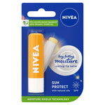 nivea lip care sun has been specially formulated vitamin e 7 uv filters to help protect your lips from the effect of the sun and prevent moisture loss. Your lips have no natural protection against the drying and damaging effect of uv rays therefore it is very important to protect them. Nivea lip care sun spf 25.provides long-lasting uv-protection from the effect of the sun. Contains the natural moisturising ingredients shea butter and jojoba oil. The result is highly protected and smoother lips. nivea lip care- live life with a smile. Nivea lip care has been specially formulated by nivea s skin care experts to provide daily care for the most delicate skin- your lips.