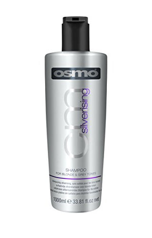 Osmo Silverising Shampoo 1000ml - Adds shine to white or grey hair.OSMO is a leading UK collection of professional haircare and styling products designed to give stylists the power to create with its diverse and extensive product range. Ingredients Aqua, PEG-25 Hydrogenated Caster Oil, Ricinus, Parfam, Limonene, Benzoate, CI 77019, CI 77891 Directions To clean hair and refresh colour. Distribute evenly through wet hair, leave on for 3-5 minutes for maximum effect. Massage gently, rinse and repeat if necessary. Box Contains 1 x Osmo Silverising Shampoo 1000ml