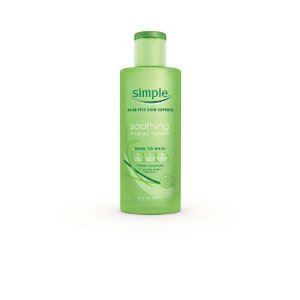 Our Simple Kind to Skin Soothing Facial Toner features a special blend of Simple skin toning goodness to help keep skin refreshed and toned; this blend includes ingredients like Pro Vitamin B5, Chamomile, Witch Hazel and Allantoin. This facial toner for sensitive skin is ideal for using after your cleanser and before your moisturiser morning and night to help remove those last traces of dirt and make up from your skin. Just pop a generous amount onto a cotton pad and gently wipe over your skin using upwards movements. Like all of our products, our Soothing Toner is Ideal even for sensitive skin, containing no artificial perfumes or colours, and no harsh chemicals that can upset your skin. The Soothing Facial Toner is a great way to finish any cleansing routine, not just if you're experiencing breakouts or blemishes. In fact, a toner is a skincare treatment on its own and helps to prepare skin for your moisturiser. Having a full skincare regime in place is always a great plan, whether you're looking to create that naturally healthy looking base for your make up in the morning or achieve cleansed, nourished skin before bed. Adding the facial toner into your beauty routine is a key step towards good feeling skin. Ingredients Aqua, Hydrogenated Starch Hydrolysate, Hamamells Virginiana Water, Allantoin, Panthenol, Niacinamide, Chamomilla Recuttia Flower Extract, Sodium PCA, Glycerin, Pantolactone, Disodium Laureth Sulfosuccinate, Citric Aicd, Methylparaben, 2-Bromo-2-Nitropropane-1,3-Diol, Potassium Sorbate Directions Apply generously to cotton wool and wipe in gentle upward movements over your skin morning and evening. Follow with our Kind to Skin Hydrating Light Moisturiser Safety Warning Use only as directed. Avoid contact with eyes. If eye contact occurs wash out immediately with warm water. If irritation occurs discontinue use. As we are always looking to improve our products, our formulations change from time to time, so please always check the product packaging before use Manufacturer Contact Information Unilever Dept ER, Wirral CH63 3JW UK Simple Kind To Skin Soothing Facial Toner removes any alkaline residue left after cleansing, helping restore the balance to your skin's natural pH leve | Unlike other cleansers, our Simple facial toner is a gentle skin cleanser made with multi-vitamins and skin loving ingredients to help keep your skin refreshed and toned | Our Soothing Facial Toner features a special blend of skin toning goodness, including ingredients like Pro-Vitamin B5, Chamomile, Witch Hazel and Allantoin | This toner and facial cleanser is 100 Percent alcohol-free and contains no artificial perfume, colour, or no harsh chemicals that can upset your skin | The Simple soothing facial toner is suitable for all skin types, even the most sensitive skin | Our soothing toner is non comedogenic, hypoallergenic, dermatologically tested and approved